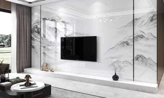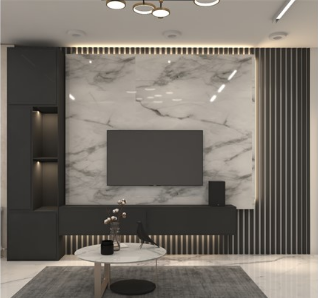 🔸 ماربل شیت پشت تلویزیون – یکی از محبوبترین کاربردهای این دیوارپوش، استفاده در دیوار پشت تلویزیون است که جلوهای مدرن و لوکس به فضای نشیمن میبخشد.