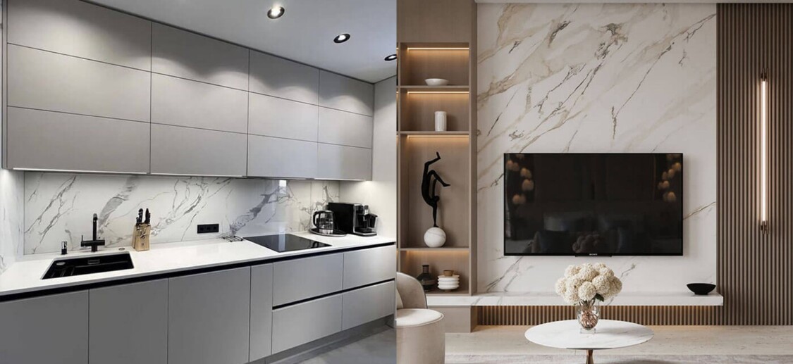 🔸 دیوارپوش اتاق خواب و پذیرایی – برای دیوارهای داخلی، بهویژه در طراحیهای مینیمال و مدرن، ماربل شیت میتواند ظاهری شیک و خاص ایجاد کند.