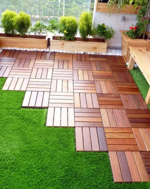 🔹کفپوش چوبی تایلی یا ترموود (برای حیاط و بالکن)
