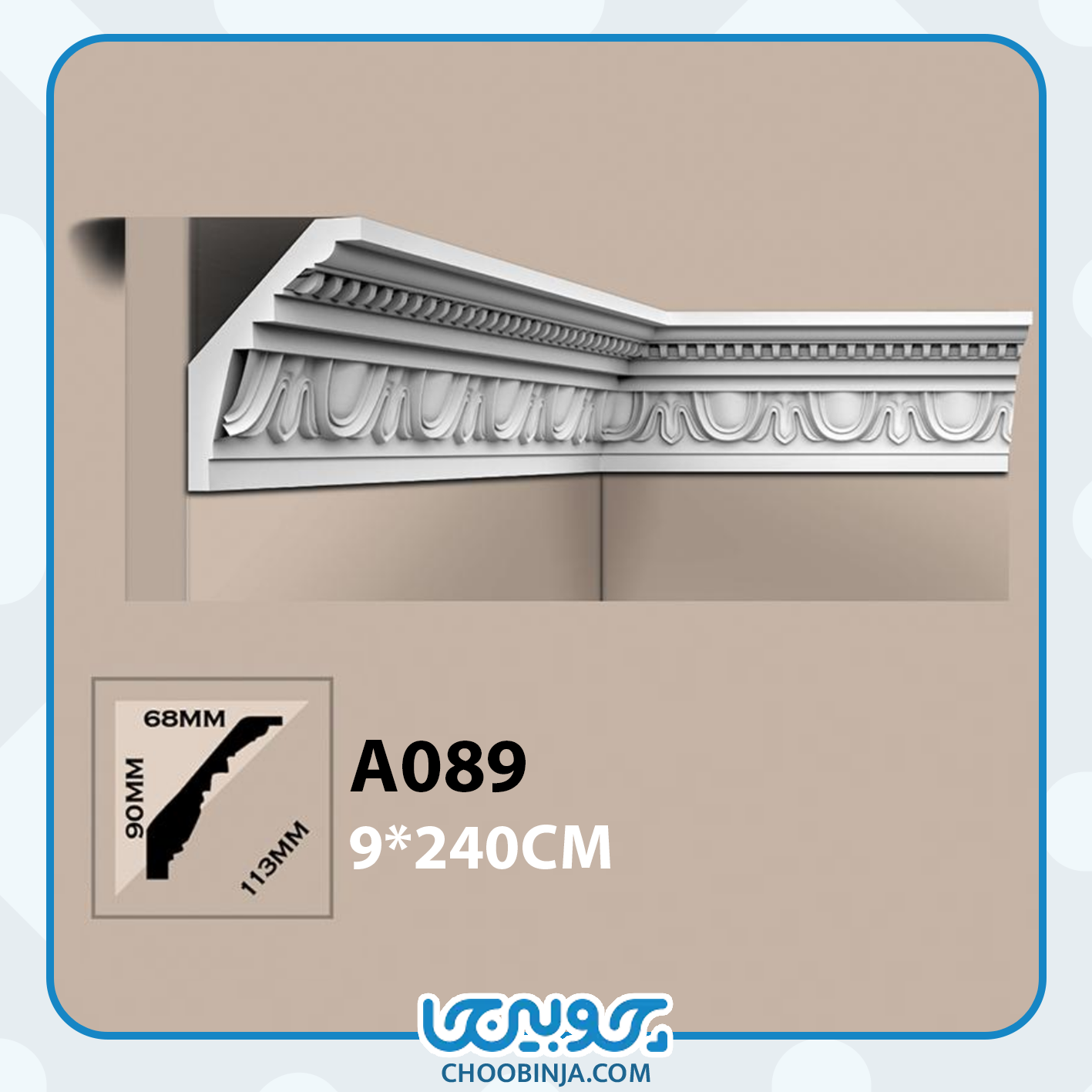 گلویی پلی یورتان A089— سبک، قابل رنگآمیزی و مناسب برای گلویی سقف پذیرایی، گلویی سقف آشپزخانه و گلویی سقف اتاق خواب با امکان اجرای نور مخفی.