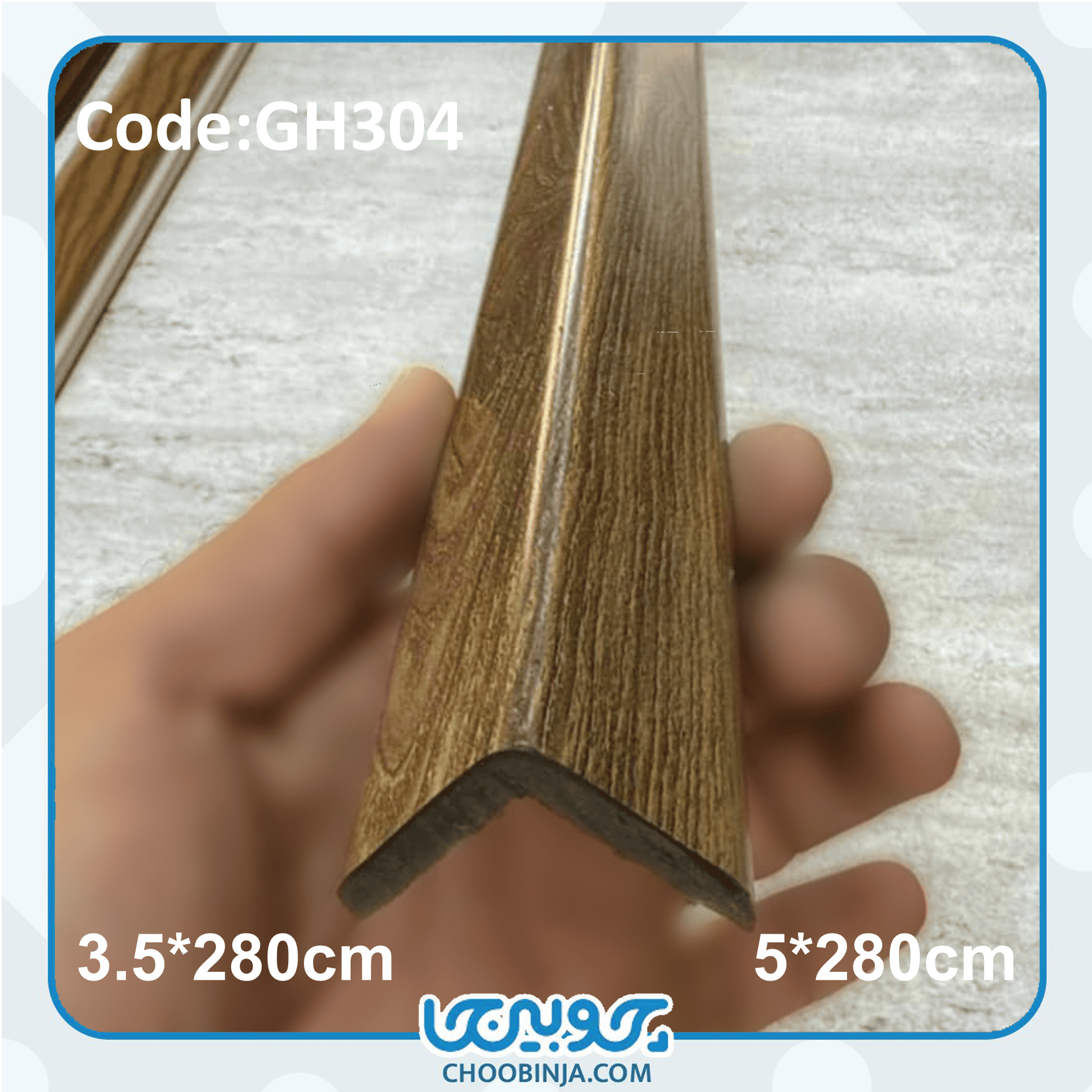 پروفیل نبشی پی وی سی رنگ قهوه ای طرح چوب کد GH304